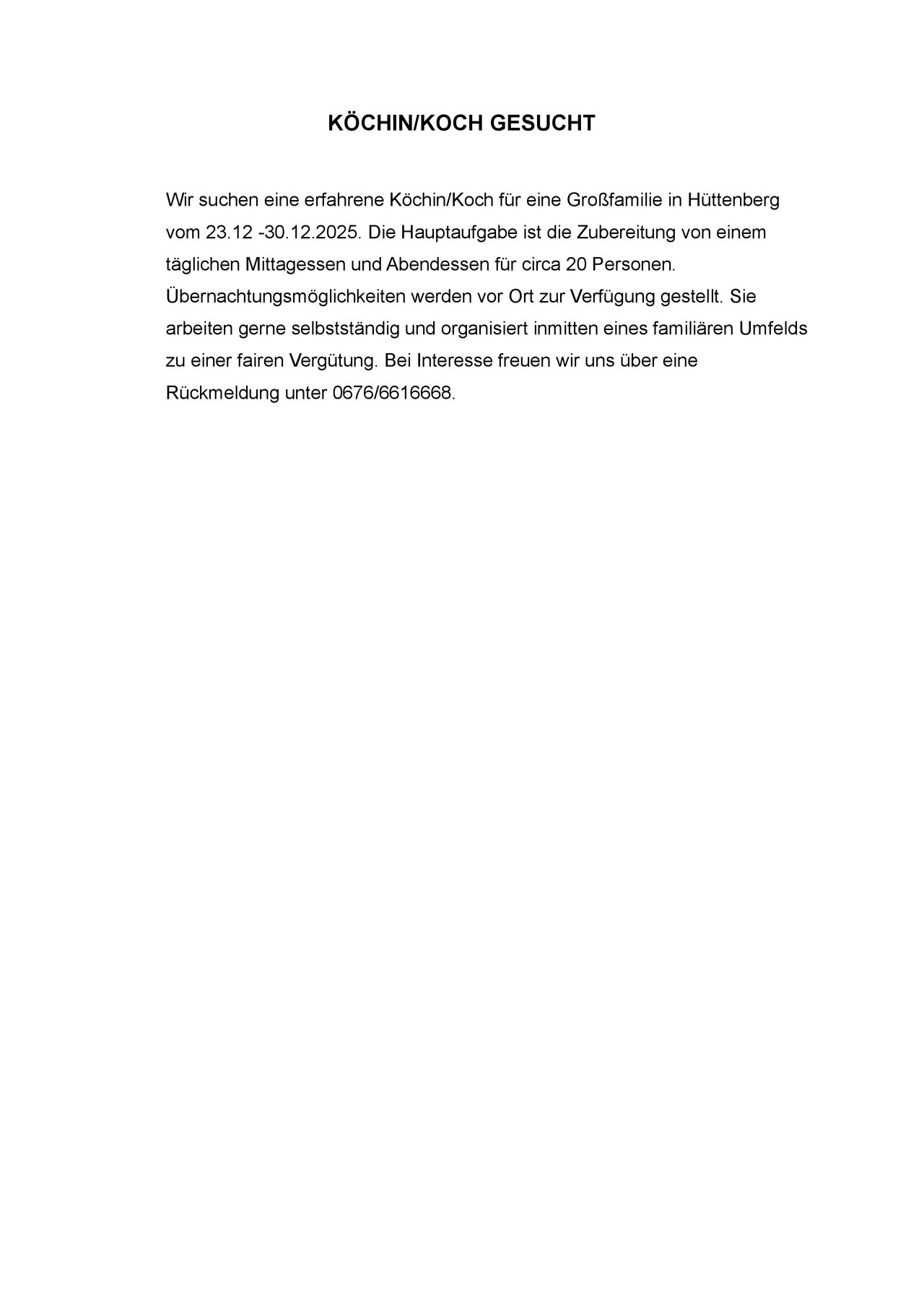 Stellenausschreibung Koch/Köchin