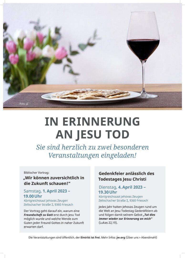 wo: Königreichssaal Jehovas Zeugen, Zeltschacher Straße 2, 9360 Friesach