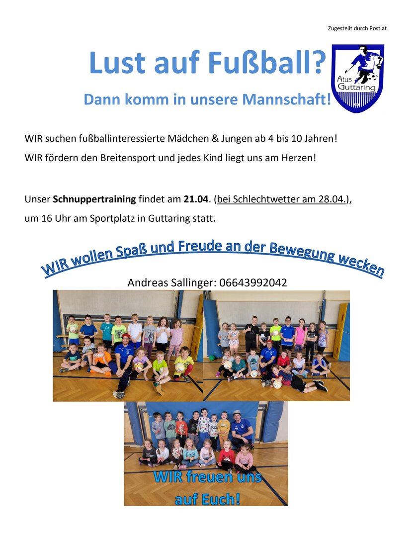 Der ATUS Guttaring sucht fußballinteresierte Mädchen & Jungen ab 4 bis 10 Jahre.