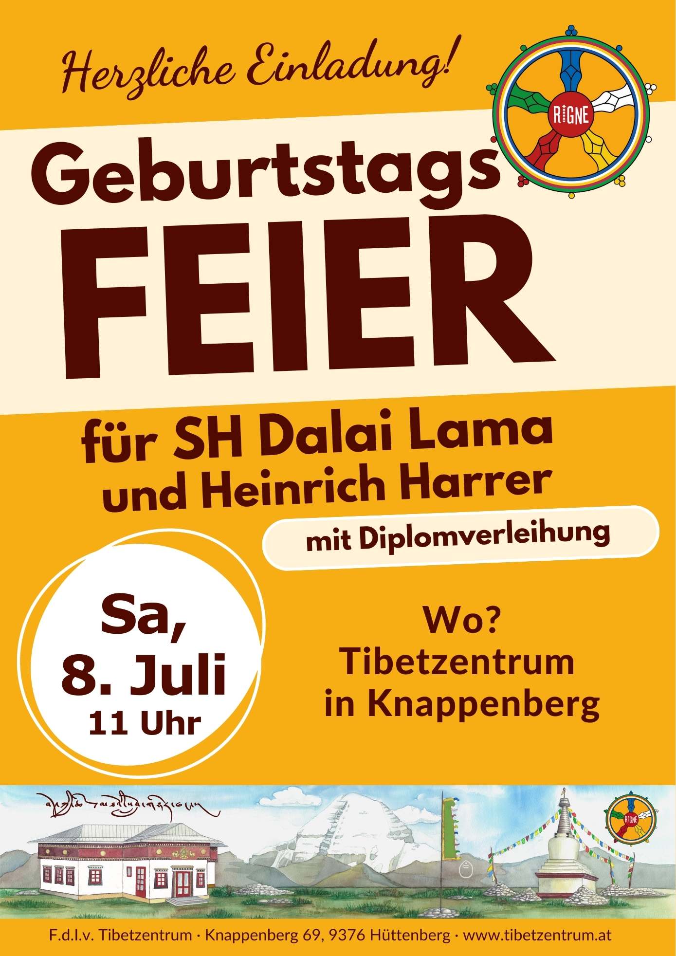 Einladung zur Geburtstagsfeier für SH Dalai Lama und Heinrich Harrer.