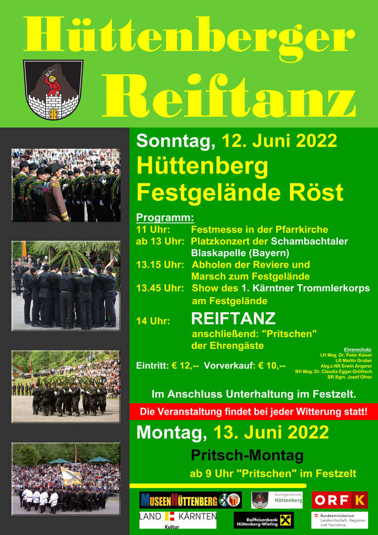Der Hüttenberger Reiftanz ist ein Brauchtumstanz der Hüttenberger Bergbauknappen, der alle drei Jahre am ersten Sonntag nach Pfingsten, stattfindet. Er ist der letzte vollständig überlieferte Männerkettentanz in Mitteleuropa wird von den Nachfahren der Hüttenberger Knappen aufgeführt.
