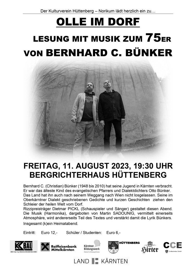 Kulturverein Hüttenberg - Norikum: Lesung - "Olle im Dorf" von Bernhard C. Bünker