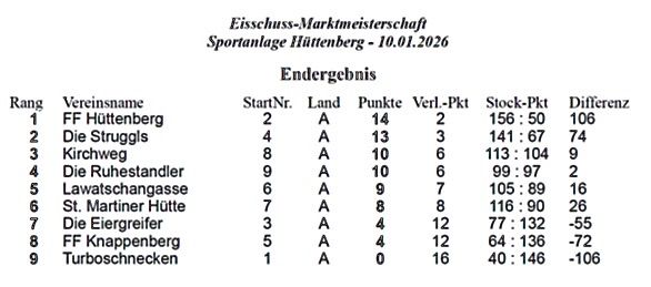 Am vergangenen Samstag, dem 10.01.2026, fanden am Sportgelände Hüttenberg die Marktmeisterschaften im Eisschuss 2026 statt.
